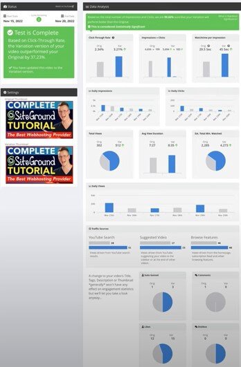 With all those statistics It can automatically helps us decide which thumbnail is performing better. In the end of the day, it will bring you a higher click-through rate, more views and more exposure on Youtube because videos with a higher click-through rate are shown more often on Youtube.