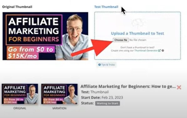 Upload the second thumbnail that you created for the Split Test. Do you yet have to create a thumbnail? You can follow this guide on how to do that using TubeBuddy.